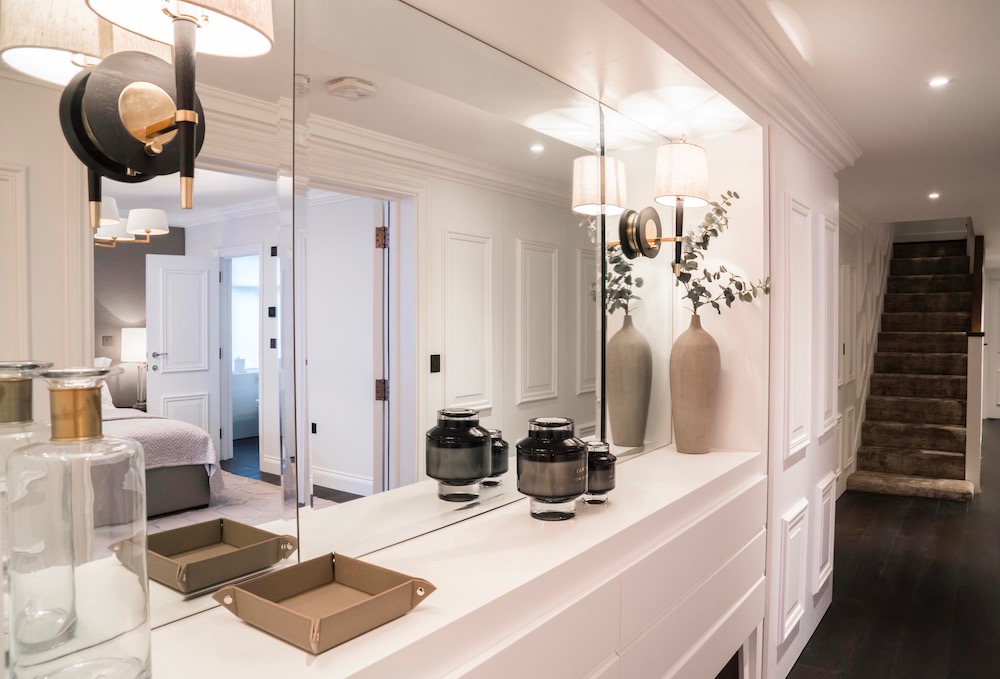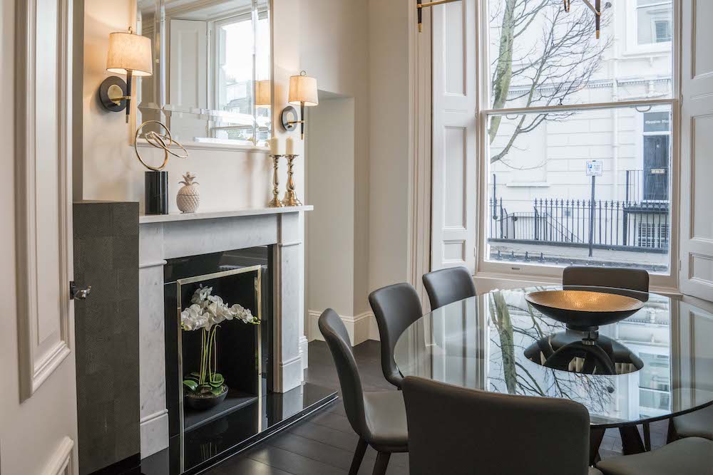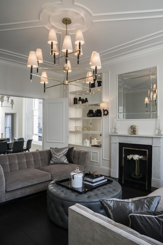 This maisonette occupies the ground and lower ground floor of a converted Victorian town house in Notting Hill. The principle rooms are situated on the raised ground floor, offering spacious living accommodation with vast ceiling heights. The design carefully re-introduced period details with a modern palette. A mix of antiques, heritage pieces and new modern designs provide a classic and timeless feel.