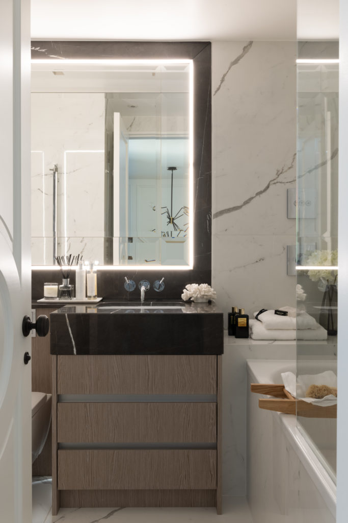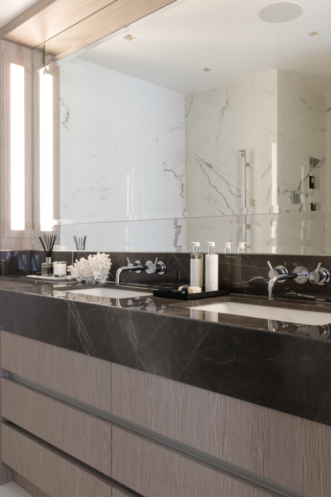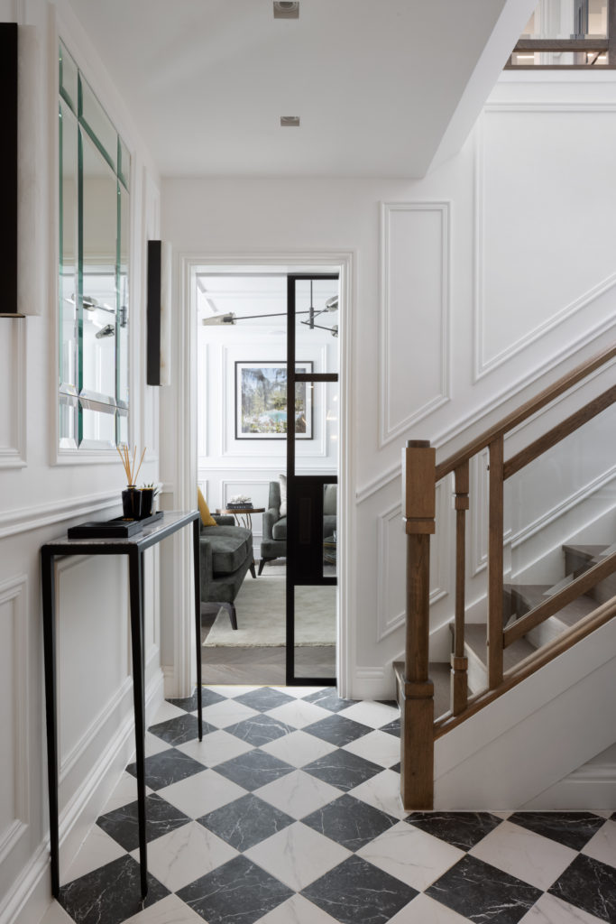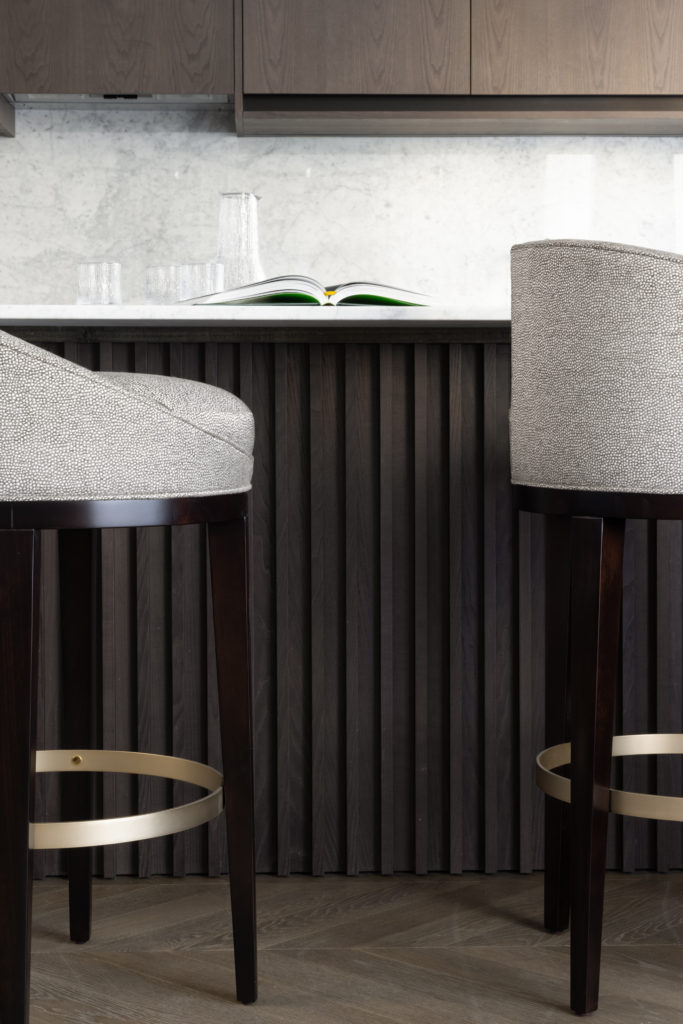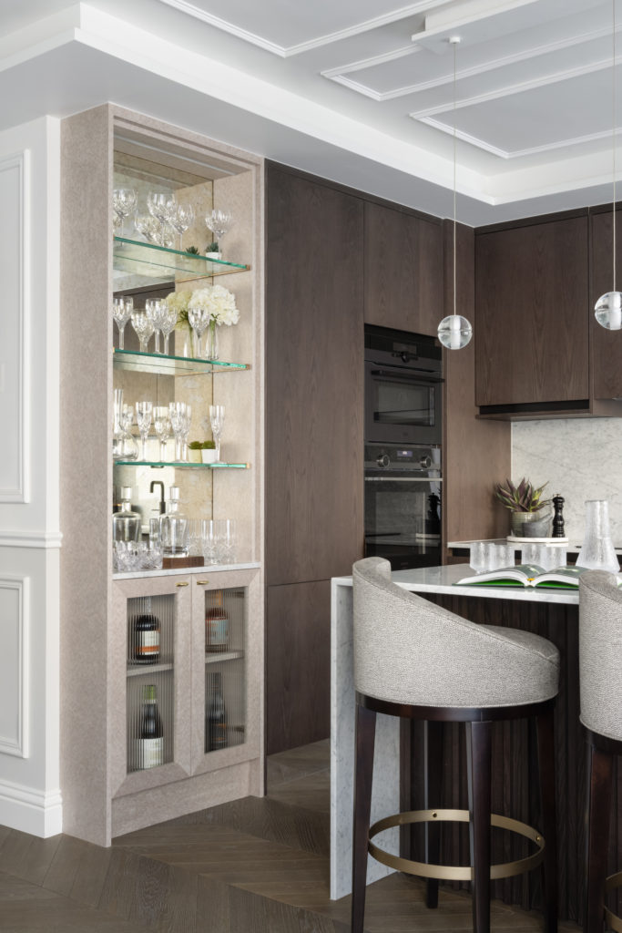 The redesign of this property on the Crown Estate reflects a period of transition offering a reinterpreted classical style. Luxury layering paired with a fresh, contemporary palette ensure this beautifully crafted property remains timeless in its aesthetic. Mulberry stained kitchen units are married with two tone panelled walls whilst a nature inspired theme connected the property to the geographical surroundings, Regent’s Park. The lighting design is rich in materiality and adds modern sensibilities and drama throughout the property. Bedrooms feature full height headboards and silk wall coverings whist the bathrooms are clad in Stataurio marble with Pietra Grey worktops. The property delivers a stylish yet cosy, Hotel Suite Home, in the heart of London.